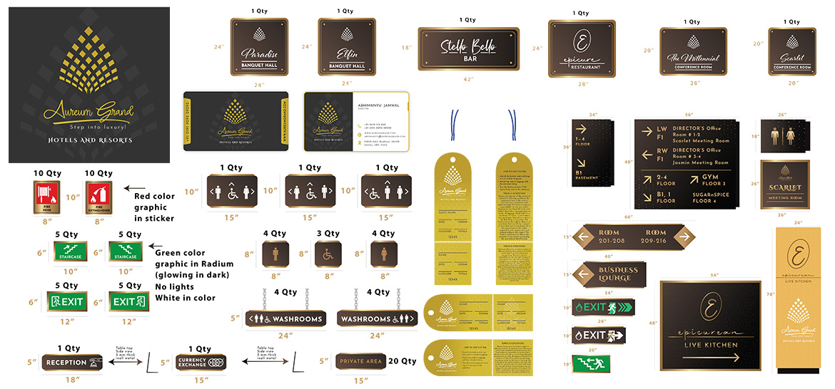 Signage Design: Crafted both indoor and outdoor signage including directional, in-room, restaurant, and banquet signs.