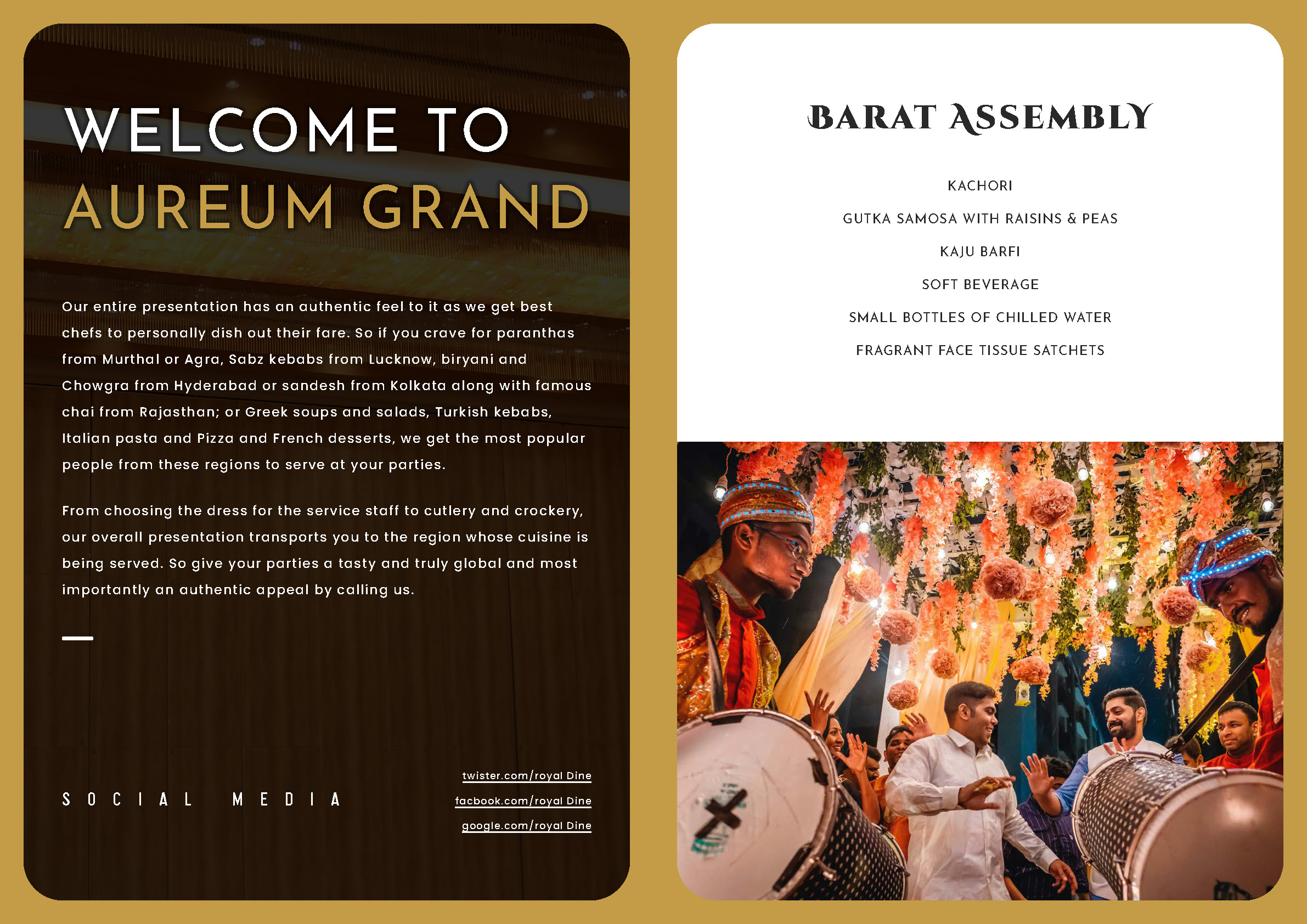 Brand Name & Identity: Suggested the name “Aureum Grand” and developed a distinctive logo, brand color palette, and typography to reflect elegance and opulence.
